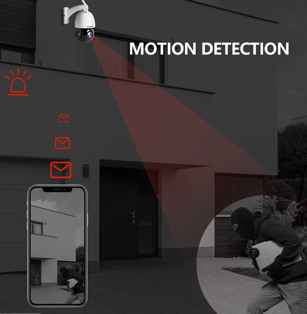 Камера автоматически регулирует поворот панорамирования / наклона и увеличивает масштаб, фиксируя четкие цели мониторинга и автоматически отслеживая движущихся людей, а также отправляя уведомления по электронной почте или уведомления на ваш телефон.