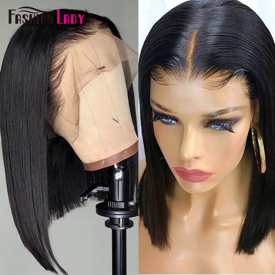 Fashion Lady 13x4 Lace Short Bob Wigs 150% Brazilian Remy Hair Can Be Dyed Lace Front Human Hair Wigs Pre-Plucked Bleached Knots