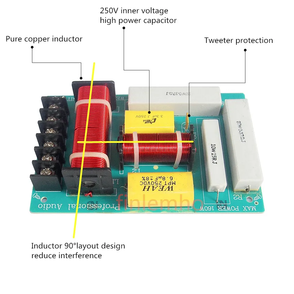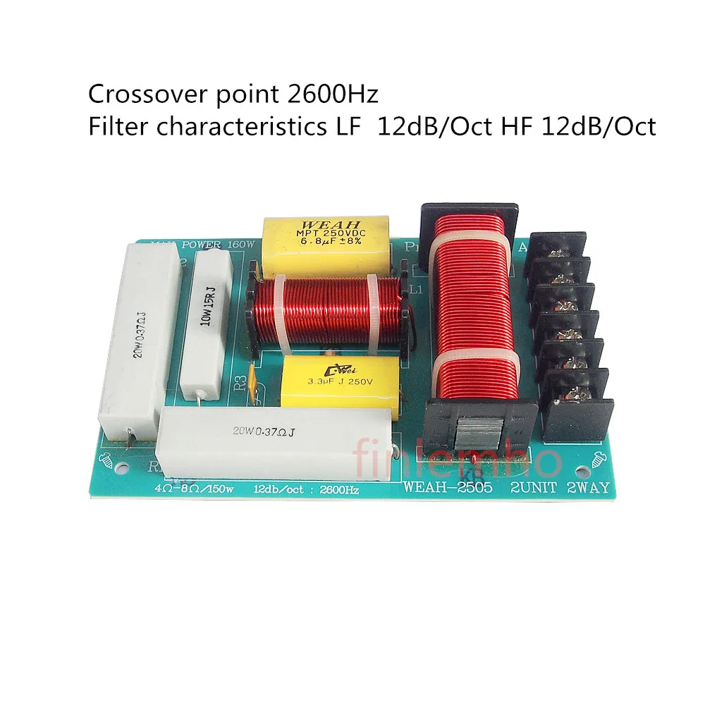 Модель D2505 Точка кроссовера 2600 Гц Характеристики фильтра LF 12 дБ/Oct HF 12 дБ/Oct Максимальная мощность 160 Вт/RMS 100 Вт Сопротивление соответствует 4 Ом и 8 Ом Рекомендуемый динамик 8 дюймов/10 дюймов/12 дюймов (<160 Вт). HF твитер 1,5 дюймов 2 3 4 дюйма. PA HF динамик 25 мм, 34 мм, 38 мм, 44 мм звуковая катушка