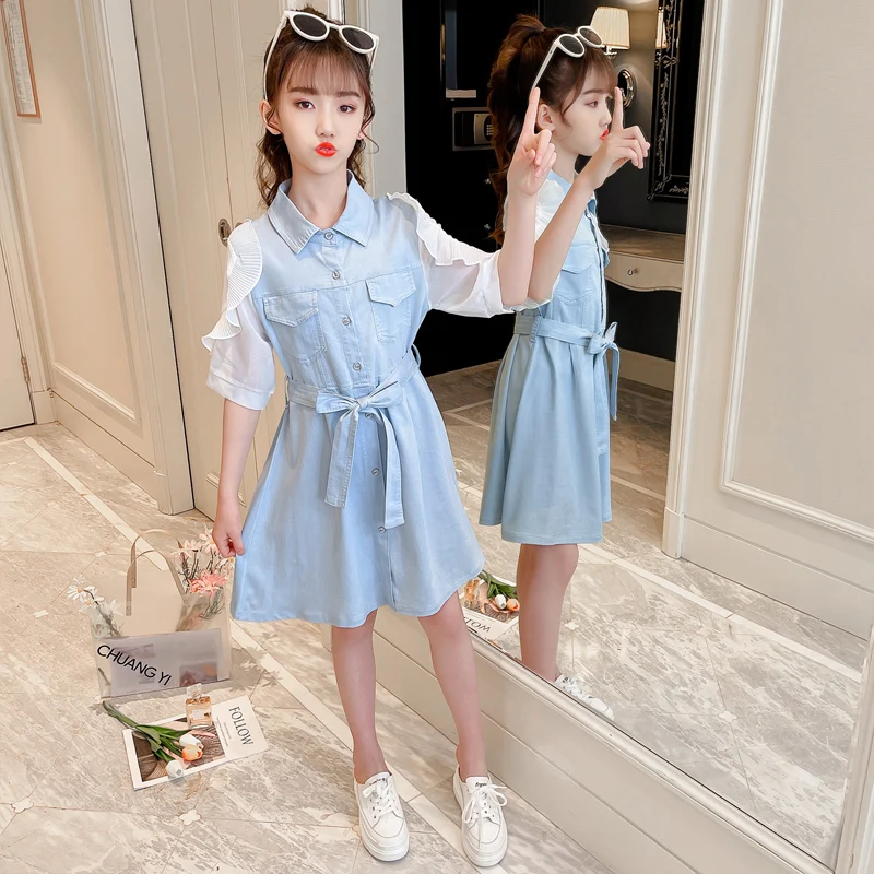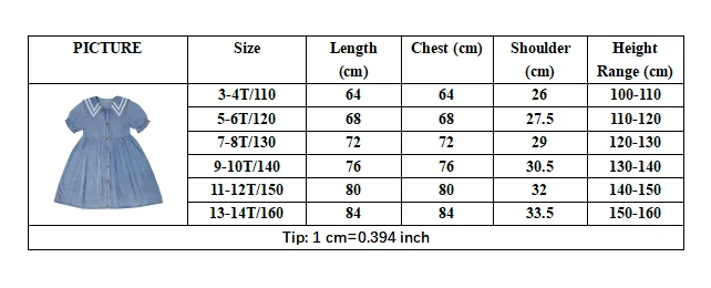 Название: джинсовое платье Посылка включает в себя: платье Материал изделия: хлопок Цвет: синий Подходящий Сезон: лето Размер: 110-120-130-140-150-160 Возраст: 3-4-5-6-7-8-9-10-11-12-13-14 лет