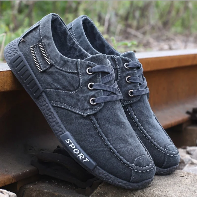 Мужская парусиновая обувь; Новинка 2017 года; Мужская модная однотонная удобная повседневная обувь; Мужская Осенняя обувь из джинсовой ткани на шнуровке