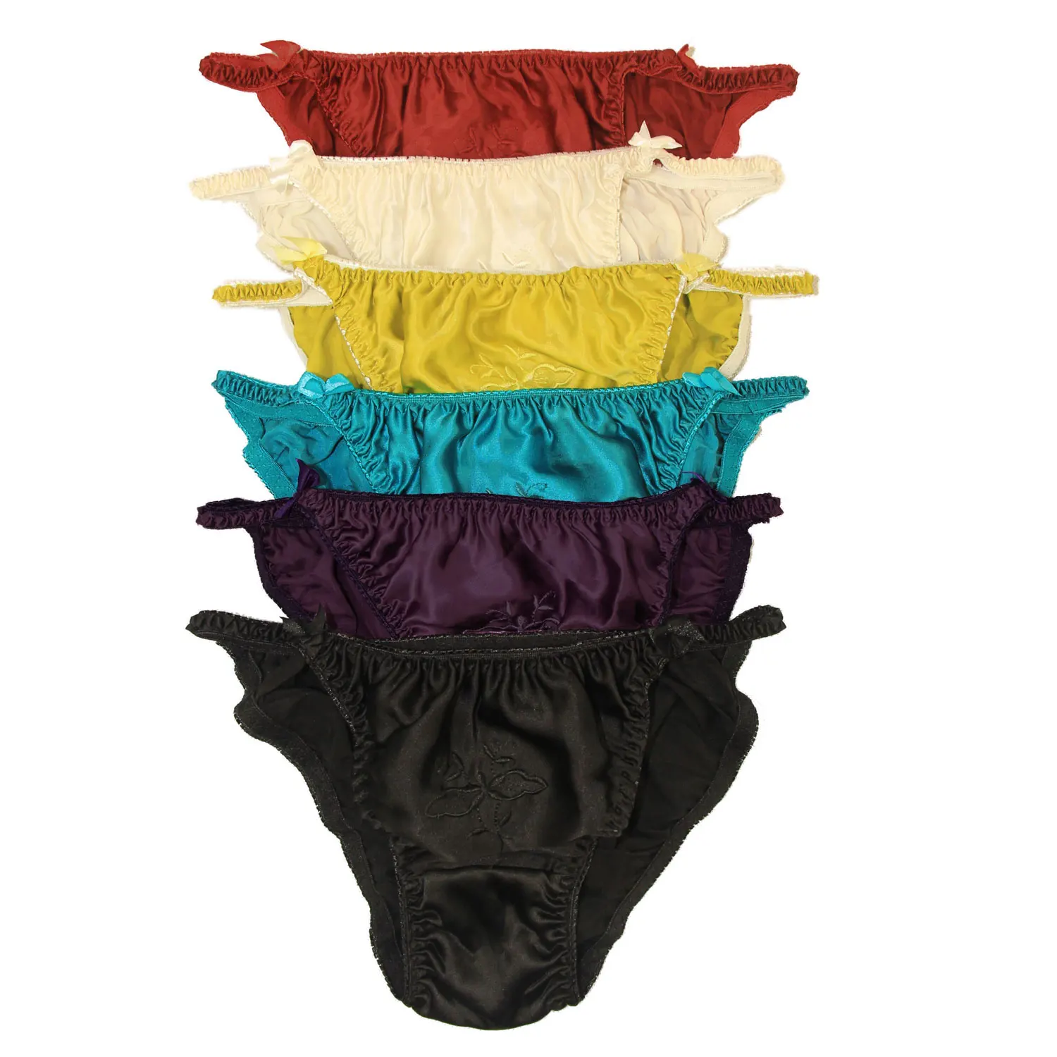 Женские трусики бикини с завязками на боку, 100% чистый шелк, 6 пар в одной упаковке, однотонные, один размер