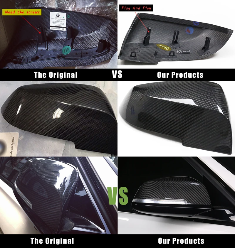 Полностью сухой зеркальный чехол из углеродного волокна для заднего вида глянцевый черный сменный стиль