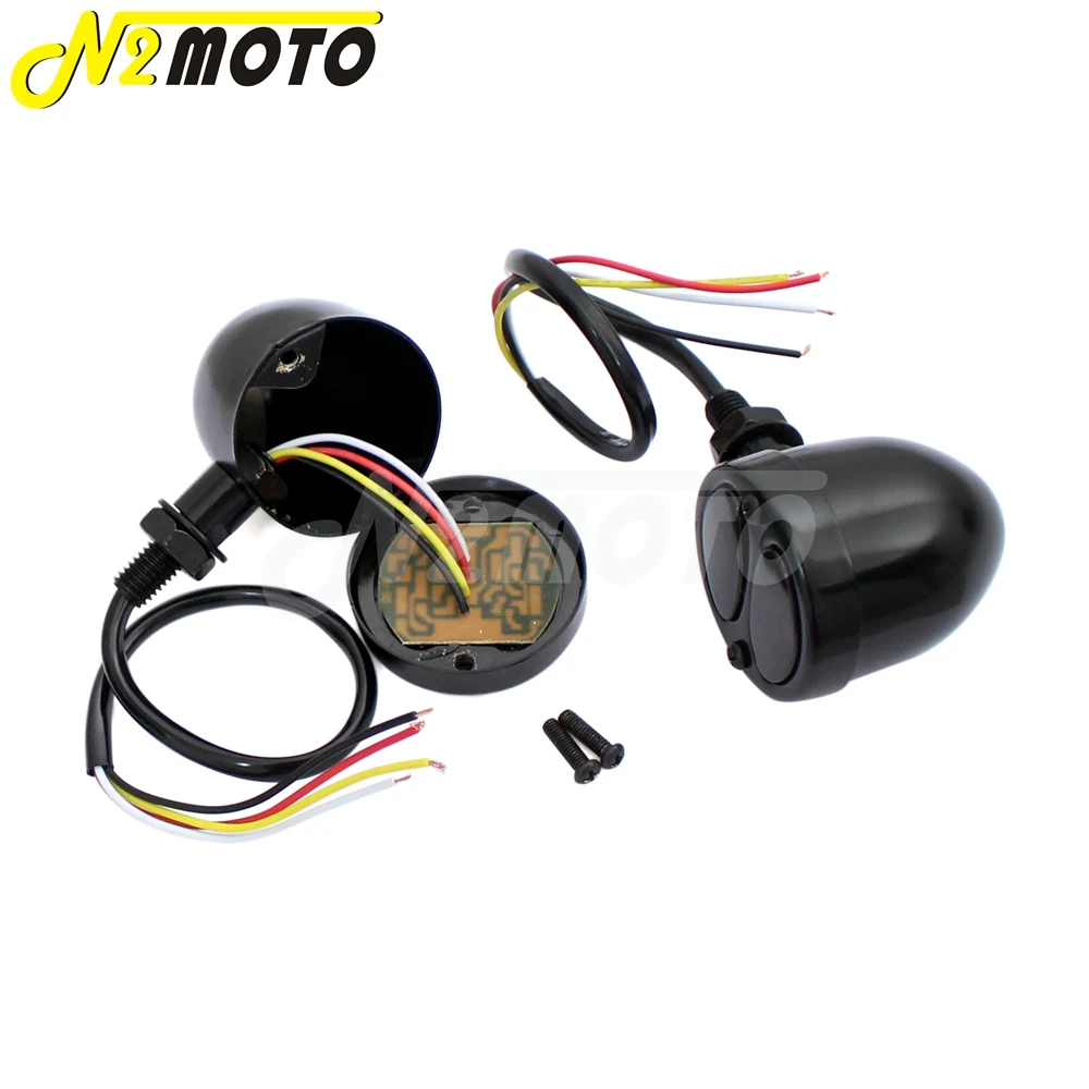 Особенности:Длительный срок службы, низкое энергопотребление, энергосбережениеКаждый светильник с 20 шт. Ультра-яркий светодиодный10 шт. Янтарный светодиодный светильник для сигналов10 шт. красный светодиодный тормозной светильникХорошее качество с металлическим корпусомПростая установка, прямой болт на складеКлассический дизайн идеально подходит для обновления вашего мотоциклаБыстрое включение/выключение времени откликаРаботает на 12 вольт постоянного токаХарактеристики:Состояние на 100% абсолютно новыйЦвет линзы: дымСветодиодный цвет: желтый и красный (задний сигнальный светильник)Светодиодный цвет: желтый и белый (передний сигнальный светильник)Материал корпуса: металлМатериал линз: пластикЦвет корпуса: черный/хромПроводка:Задний сигнальный светильникЧерный провод-отрицательныйЖелтый сигнальный светильникБелый провод-задний светильникКрасный провод-тормозной светильникПередний сигнальный светильникЧерный провод-отрицательныйЖелтый сигнальный светильникБелый проводный светильникИзмерение:Размер корпуса: прибл. 57 мм x Φ50 ммДлина провода: прибл. 30 смМонтажная резьба болта: 10 ммПрименимость:Универсальный подходит для большинства 10 мм сигнальный светильник поворота.Для Harley Dyna Bobber H-onda Y-amaha S-uzuki K-awasaki мотоциклы, чоппер, крейсер, пользовательские велосипеды, большинство мотоциклов с 10 мм отверстием обтекателя и DC 12VПосылка включает в себя: