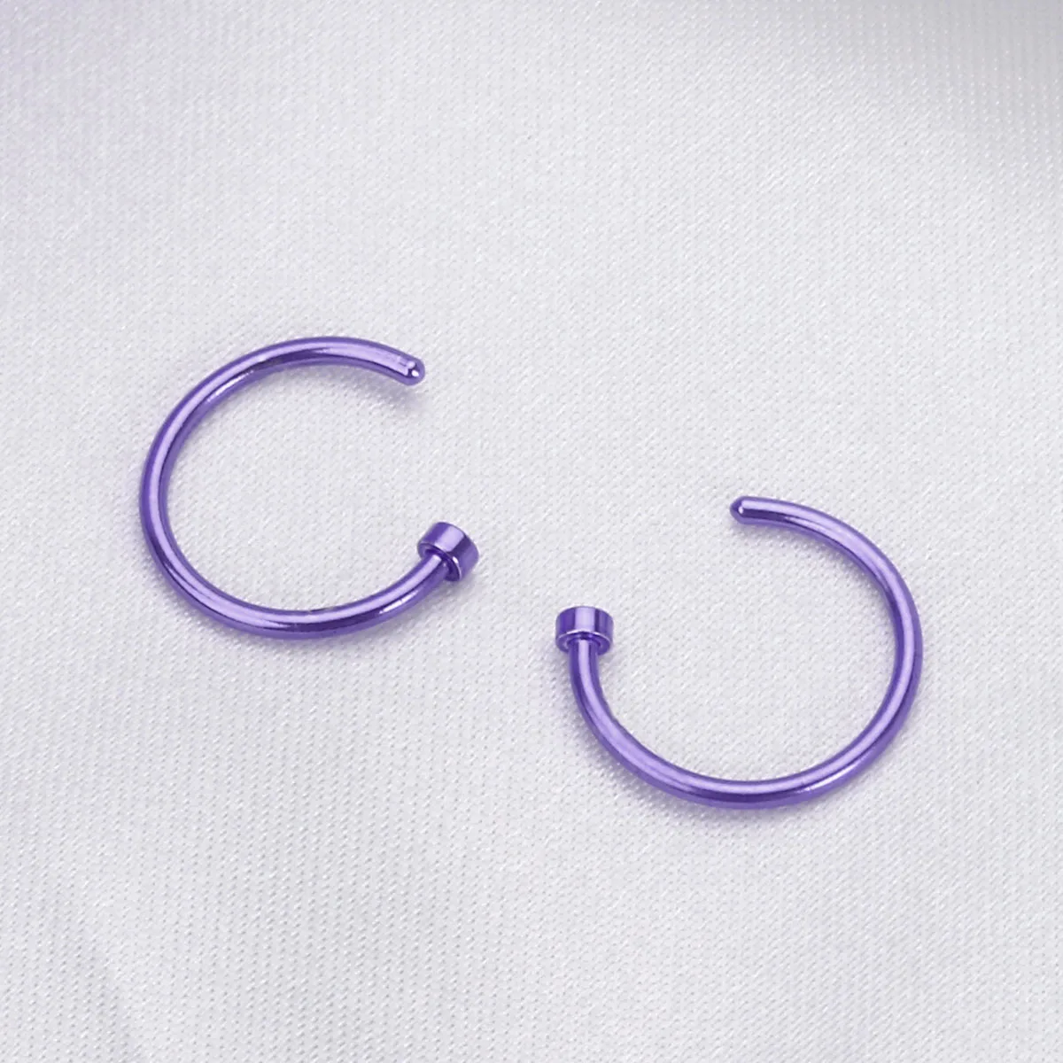2 шт унисекс хирургический, Титановый стальной открытый кольцо в нос гвоздик для пирсинга 10 мм (фиолетовый)