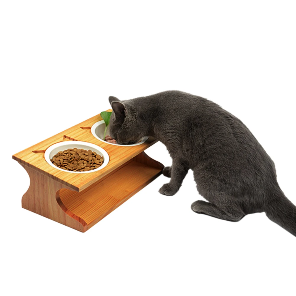 Pet Cat обеденный стол бамбуковый тип керамические двойные миски для домашних животных
