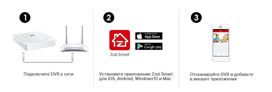 2) Загрузите приложение Zosi Smart для iOS, Android, Windows10 и Mac