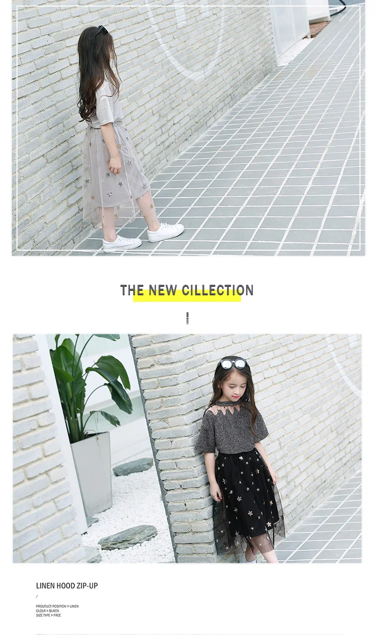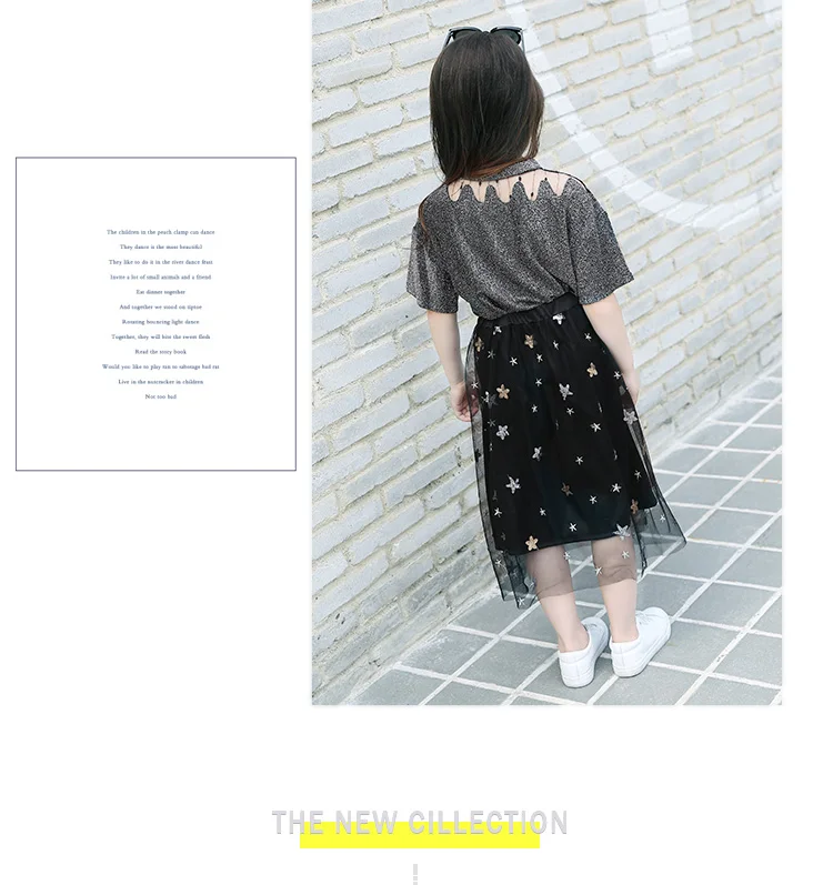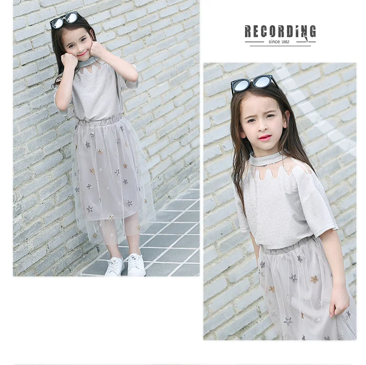 Ткань: хлопок + сетка Комплект из 2 предметов с платьем для девочек Шикарная футболка с короткими рукавами + сетчатая Юбка со звездами и блестками FashionTeenage платье для девочек 120 см, 130 см, 140 см, 150 см, 160 см, 165 см,