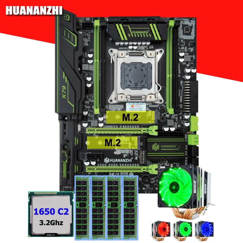 Материнская плата HUANANZHI X79 Pro LGA2011 с двумя слотами M.2 + Xeon E5 1650 C2 3,2 GHz CPU + 4*4G 1333 DDR3 RECC + кулер адаптер + кабель SATA + металлический задний щит + диск драйвера + Руководство пользователя