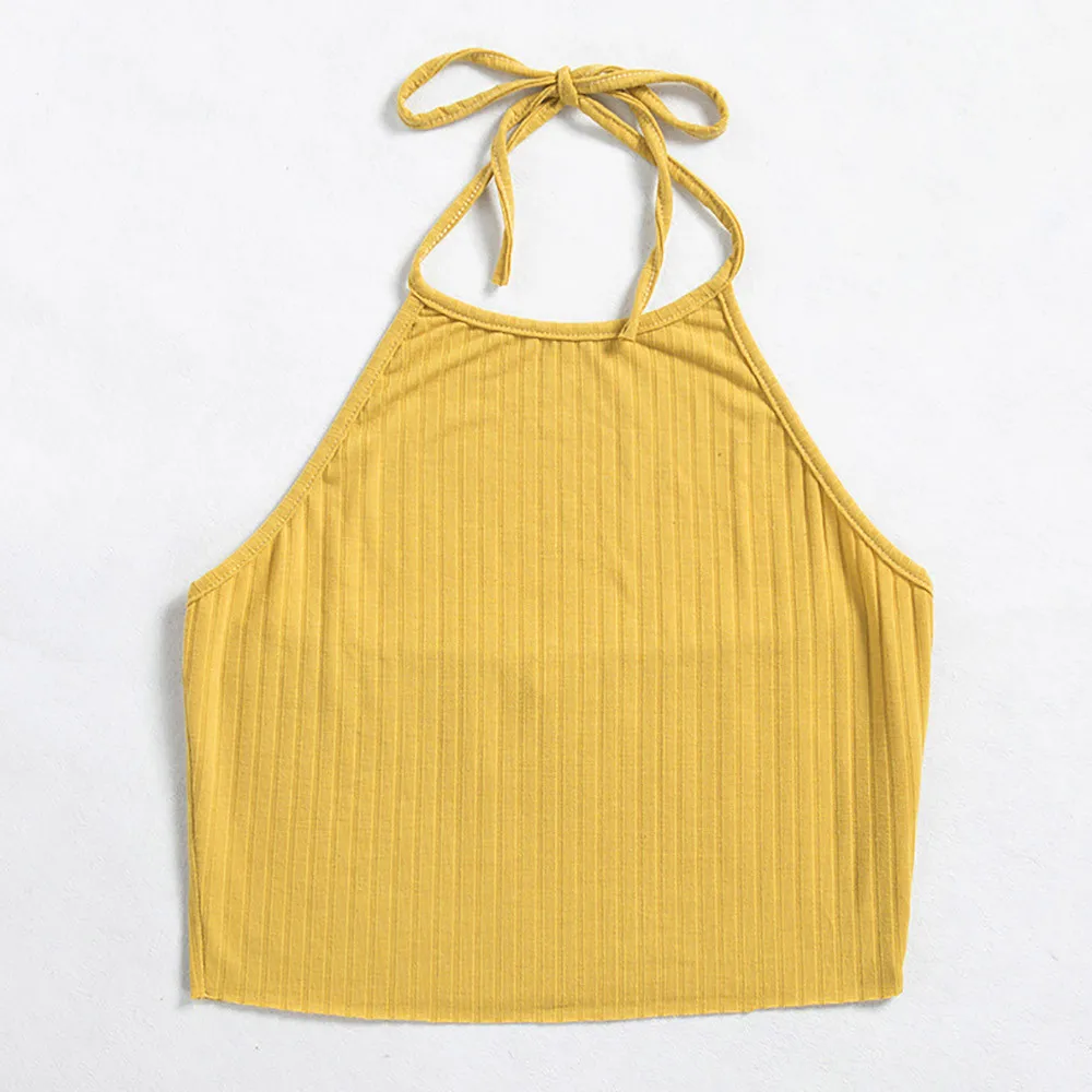 Женский сексуальный жилет без рукавов с лямками, повседневный однотонный короткий топ с круглым вырезом, летняя футболка, желтый укороченный топ, 0120