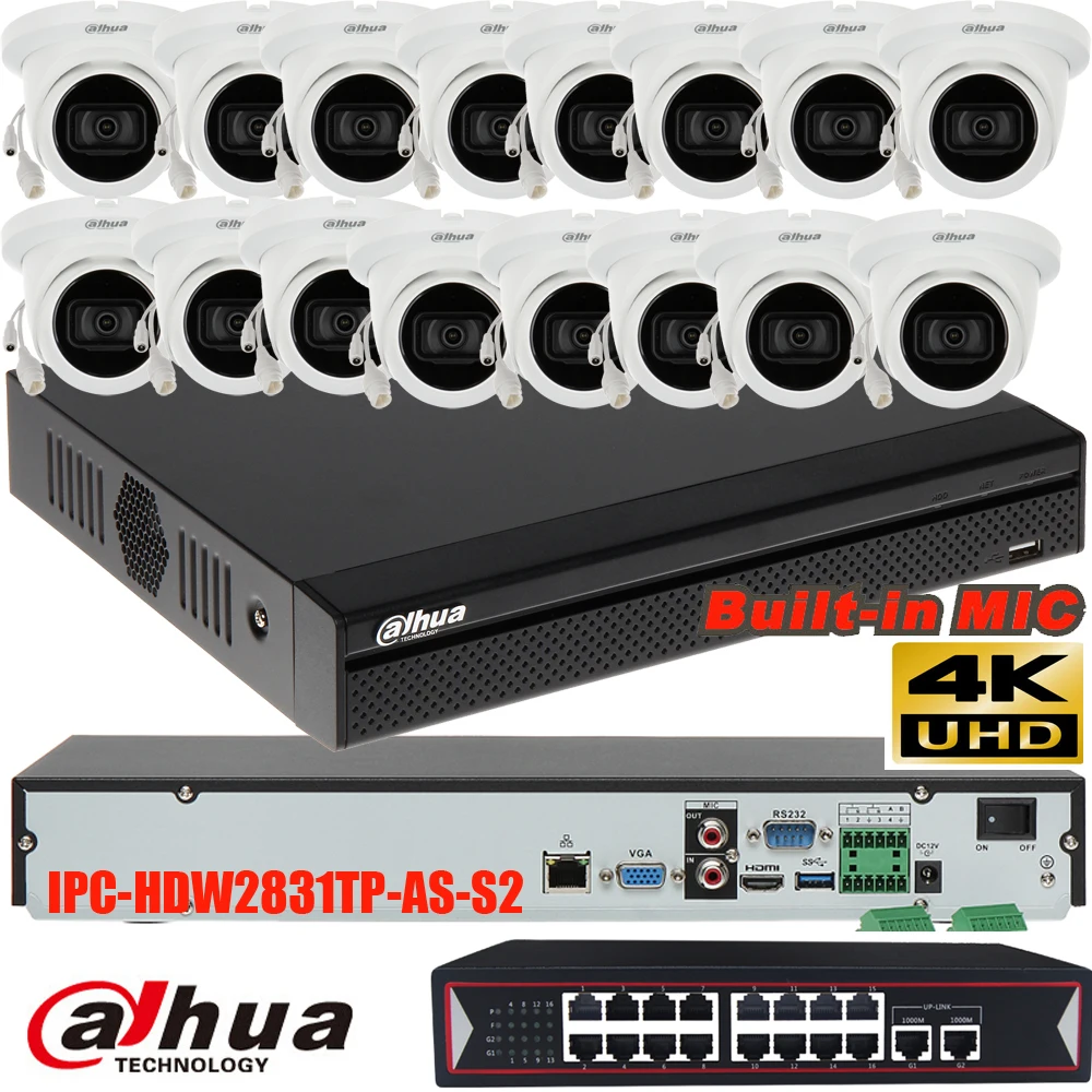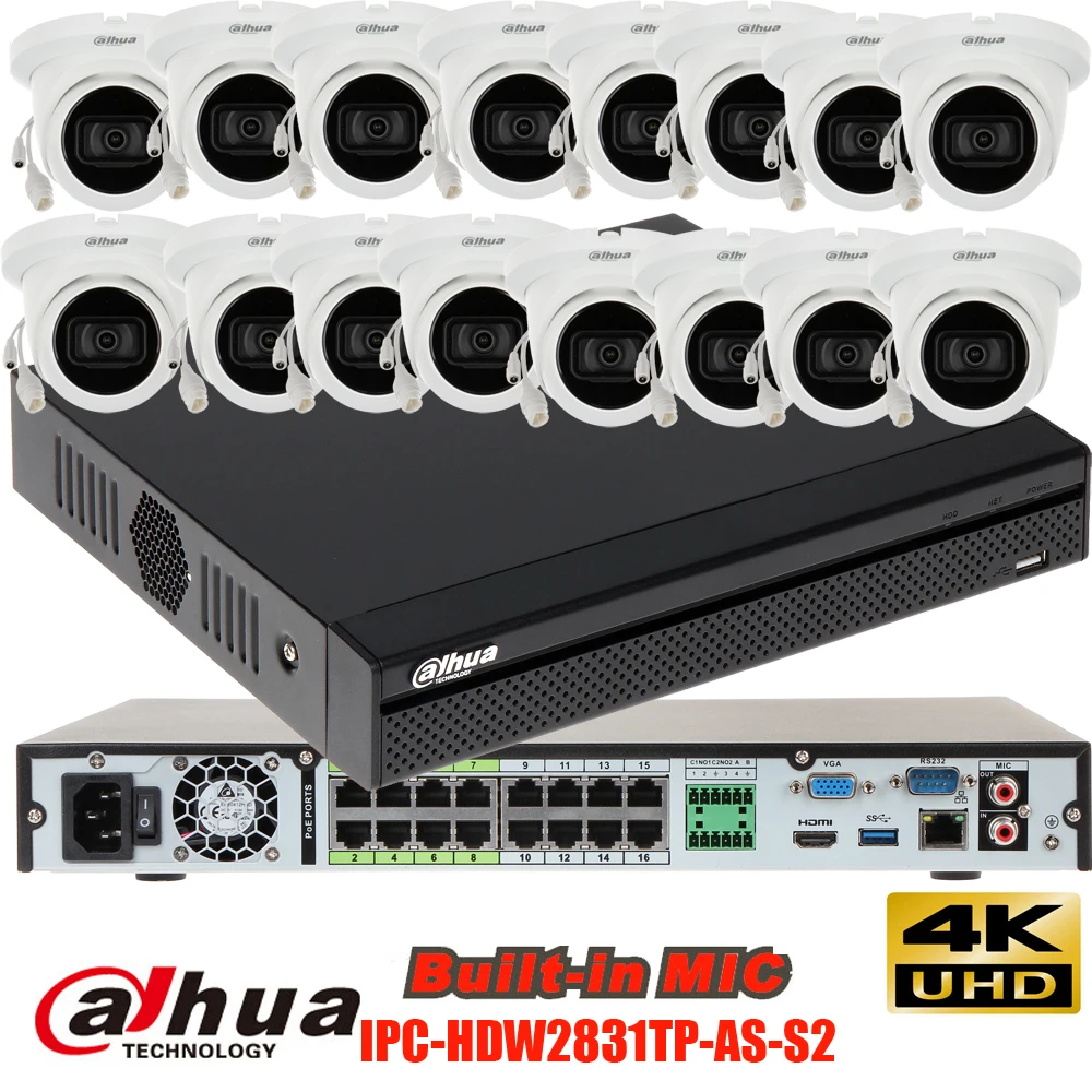 Mutil langugae dahua 4k H.265 16CH poe NVR5216-16p-4ks2 комплект с 16ch 4K POE водонепроницаемая купольная ip-камера IPC-HDW2831T-AS