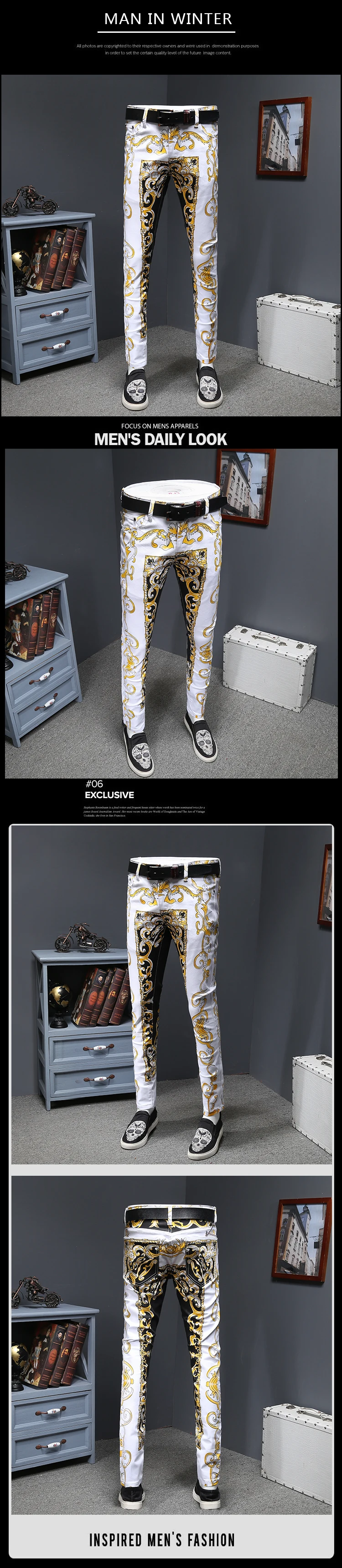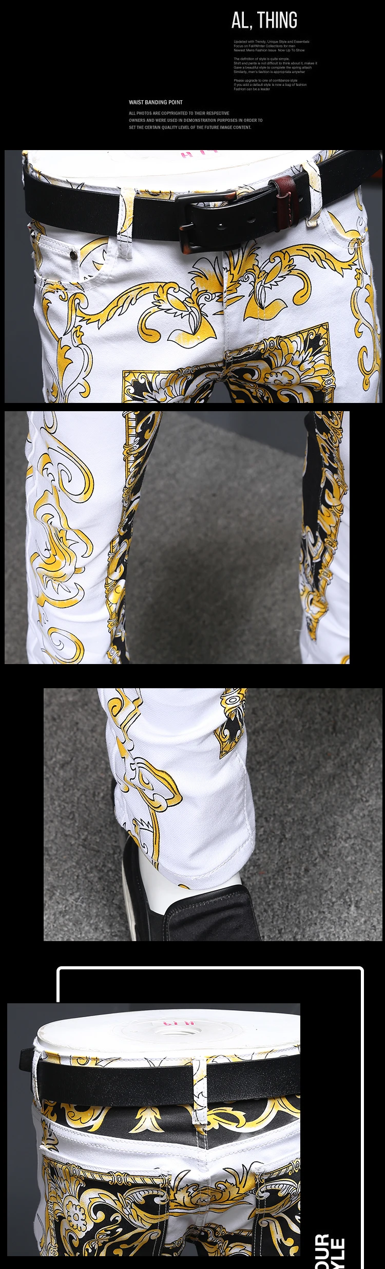 Роскошные золотые джинсы с принтом Homme, узкие дизайнерские джинсы для мужчин, Erkek Kot Pantolon SkinnyGold Denims, Стрейчевые вечерние Брюки