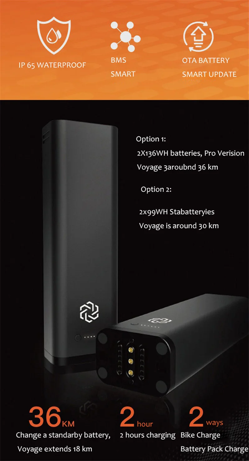 Особенности:Передняя и задняя система подвески, EABS, внешний аккумулятор, быстрое зарядное устройство, мобильное приложение, Bluetooth динамик, GPS