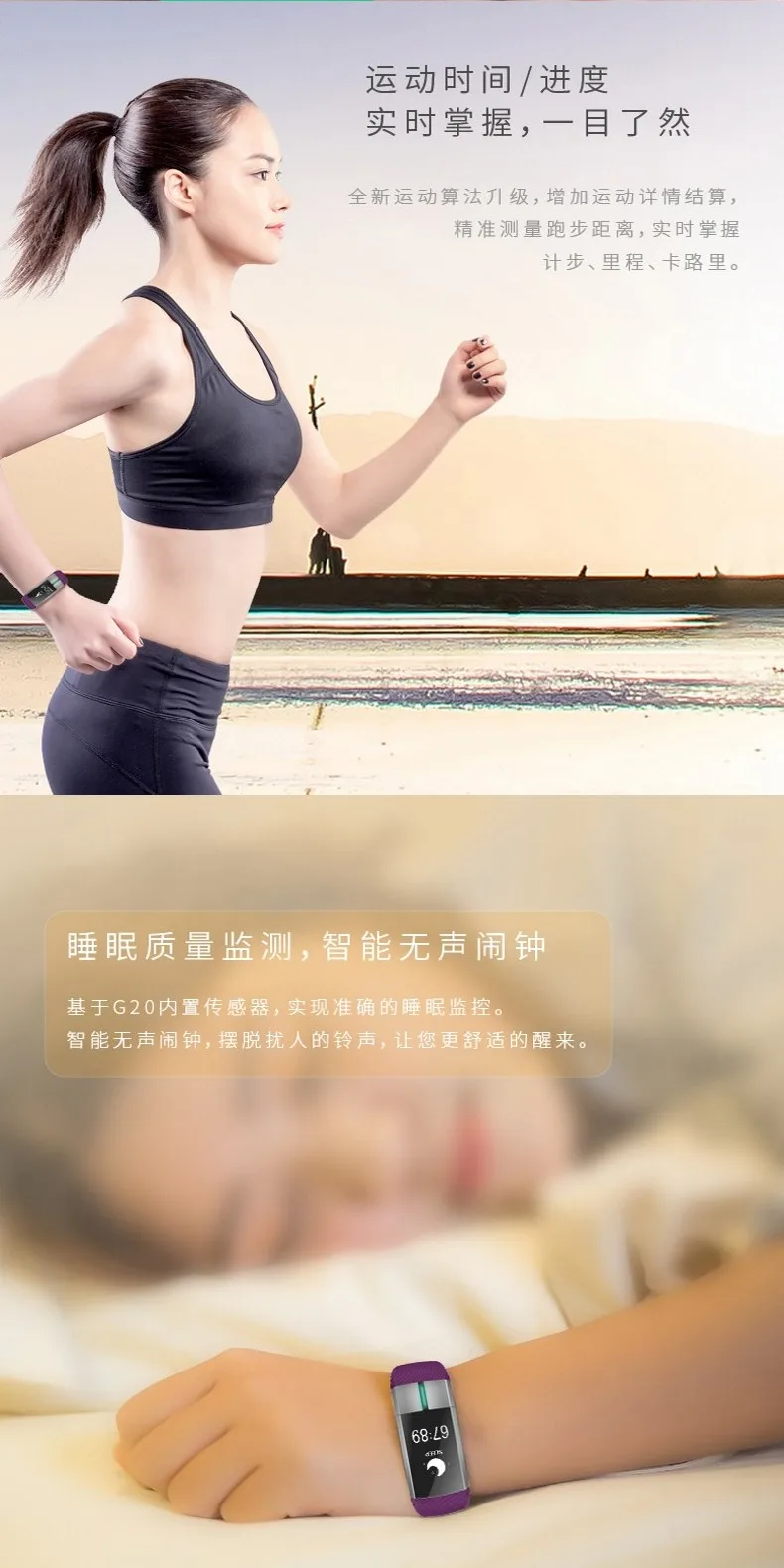 Мониторинг и оценка артериального давления, традиционный способ неточен, в G20 браслет ЭКГ, может быть сделан с статическим и динамическим сочетанием точного мониторинга. Избавьтесь от ограничений предыдущего статического мониторинга и лучше предоставьте точные данные о здоровье для спорта