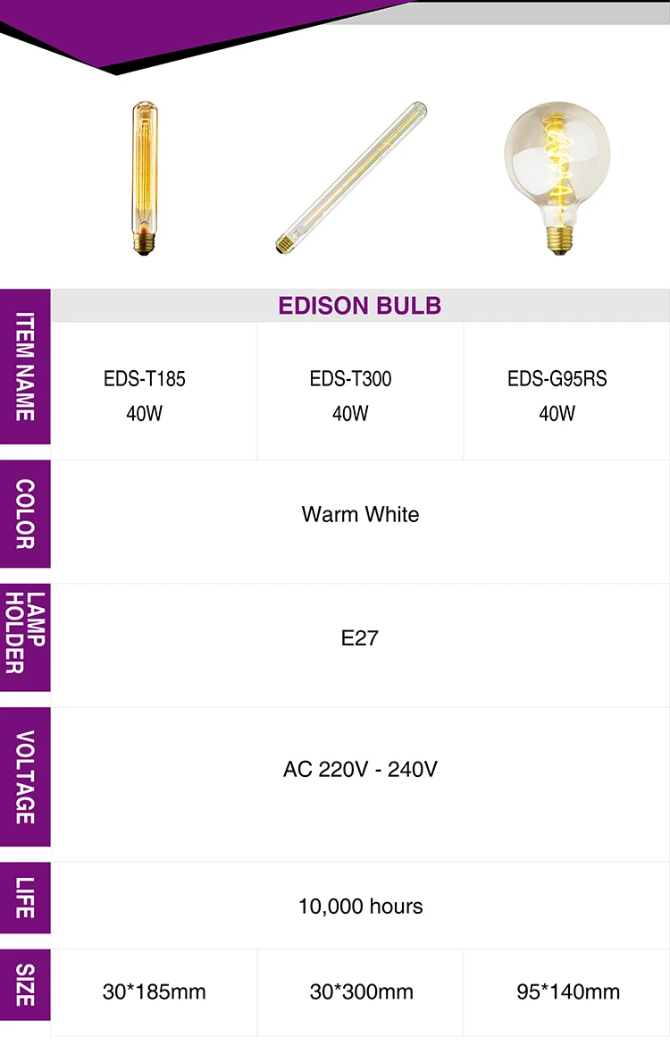 Модель:ST64;ST48;T10;T185;T300;T45;G95Материал:Стеклянная крышка и медный ламповый патронЦветовая температура:Теплый белый (2700-3500 к)Патрон:E27/E14Напряжение:AC220-240VМощность:25 Вт; 40 Вт; 60 ВтВремя жизни:> 10000 часовГарантия:1 годСертификация:CE & ROHSФлуоресцентныйВнимание, пожалуйста:Мы отправим лампу с сильной посылка, но иногда это будет иметь некоторые проблемы,