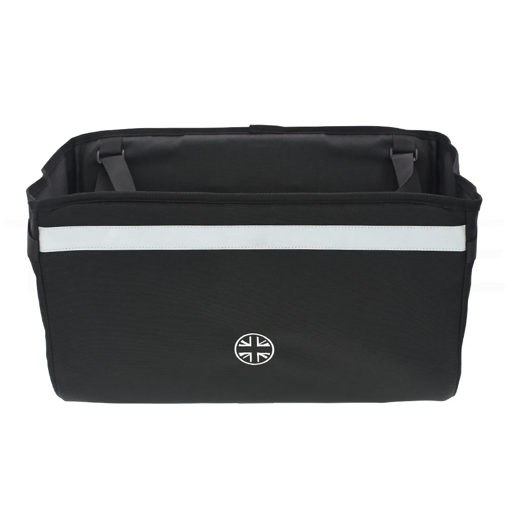 Я дизайнер этой сумки. В то же время я также являюсь поклонником складных велосипедов. Обычно я пользуюсь этой сумкой для корзин, отправляюсь в магазины, каждый день на выходные и на выходные. 1. Это одна из серии сумок с британским флагом, на сумке есть британский флаг, они украшены вышивкой. 2. Его емкость составляет около 18 л (около 40 см * 30*15 см), вы можете взять свой мобильный телефон, компьютер, кошелек или ноутбук для работы. Вы также можете взять с собой очки, одежду, перчатки, бутылку воды или другие инструменты для путешествий. 3. Его материал-нейлон 900D, который является водонепроницаемым. Обычная сумка всего 500D. Материал очень хороший. Он не является водонепроницаемым, потому что изготовлен из рукоделия. Вы можете использовать дождевик в дождливую погоду. 4. Система складывания, она может быть свободно отрегулирована по размеру в соответствии с вашими потребностями. Минимальная емкость при закрытии корзины. 5. Удобно, эту сумку можно носить вручную, через плечо или на велосипеде 6. Безопасный, со светоотражающими полосками на сумке и дождевой крышке, он может защитить вас в темноте.