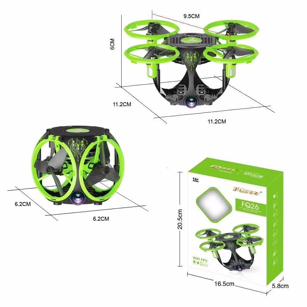 Производитель: FQ777 Наименование товара: складной Дрон FQ777 FQ26 Частота: 2,4G Канал: 4CH Гироскоп: 6-осевой Материал: ABS, PA Батарея: 3,7 в 450 мАч 25c (все указанные аккумуляторы входят в комплект поставки) Время полета: 6-8mins Время зарядки: 80 минут Расстояние Wi-Fi: около 30-40 м Камера: 0.3MP(720*576 30 кадров в секунду) Передатчик: режим 2 Размер продукта: 6,2x6,2x5,3 см (руки в сложенном виде) Посылка Размер: 8,8*8,8*7,5 см Вес изделия: 46 г Посылка Вес: 150 г Цвет: черный и зеленыйОсобенности: * С складной ручкой, маленький размер, легко носить с собой. * Встроенный широкоугольный объектив wifi FPV камера. * С функцией удержания высоты обеспечивает стабильный полет. * С безголовым режимом, не нужно регулировать положение самолета перед полетом. * С функцией Wi-Fi можно подключать приложение, систему APK для съемки, видео, передачу в режиме реального времени через Изображение камеры телефона. * Wi-Fi в режиме реального времени передача FPV система, которая может снимать фотографии и записывать видео для вашей большой памяти. * 4 канала, которые могут выполнять взлет, спуск, движение вперед, назад, левую боковую лету, правую боковую лету и поворот на 360 ° * У него есть 6 оси гироскопа, который может иметь более стабильный полет и быть простым в управлении. * Он может реализовать 3D падение 360 ° прокатки в четырех направлениях.