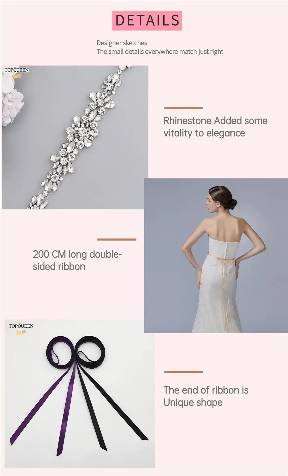 1. Тип: ремень 2. Размер украшения: 3*45 см/1,18*17,1 дюйма 3. Ленты: 2*275 см/0,78 * 108.26IN 4. Цвета: 20 видов цветов можно выбрать для ленты в качестве вариантов цвета или изображения.