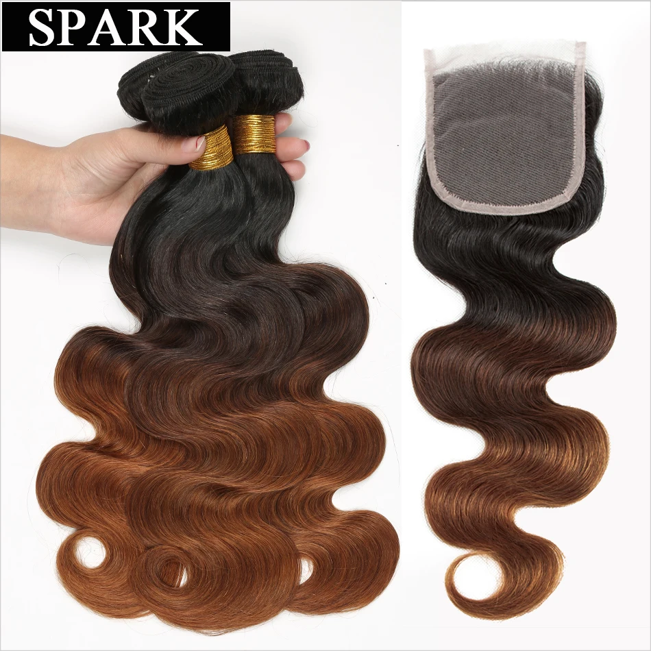 100% Необработанные перуанские волнистые человеческие волосы 3/4 пучки с закрытием, 1B/4/30 цвет Омбре, высокое качество и умеренная цена