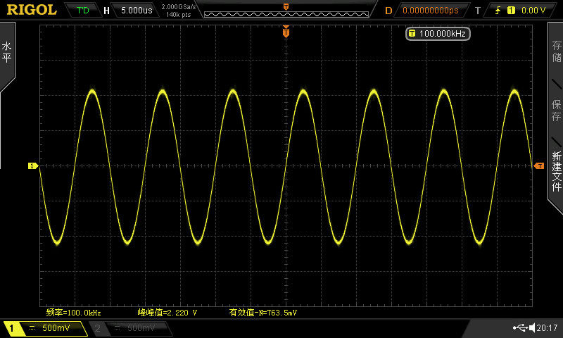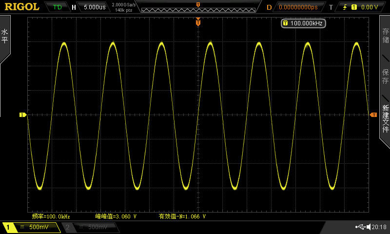 Тест максимального усиления: тест сигнала 100 кГц, входной сигнал 10mVpp, 220 раз = 46848 дБ
