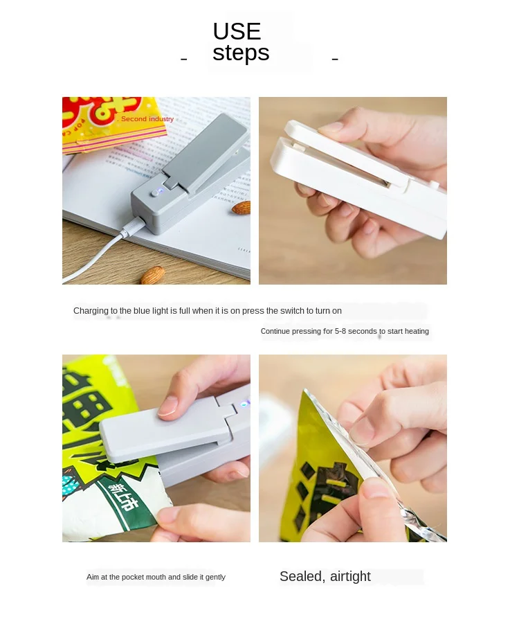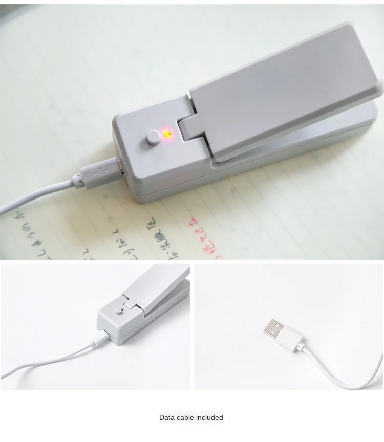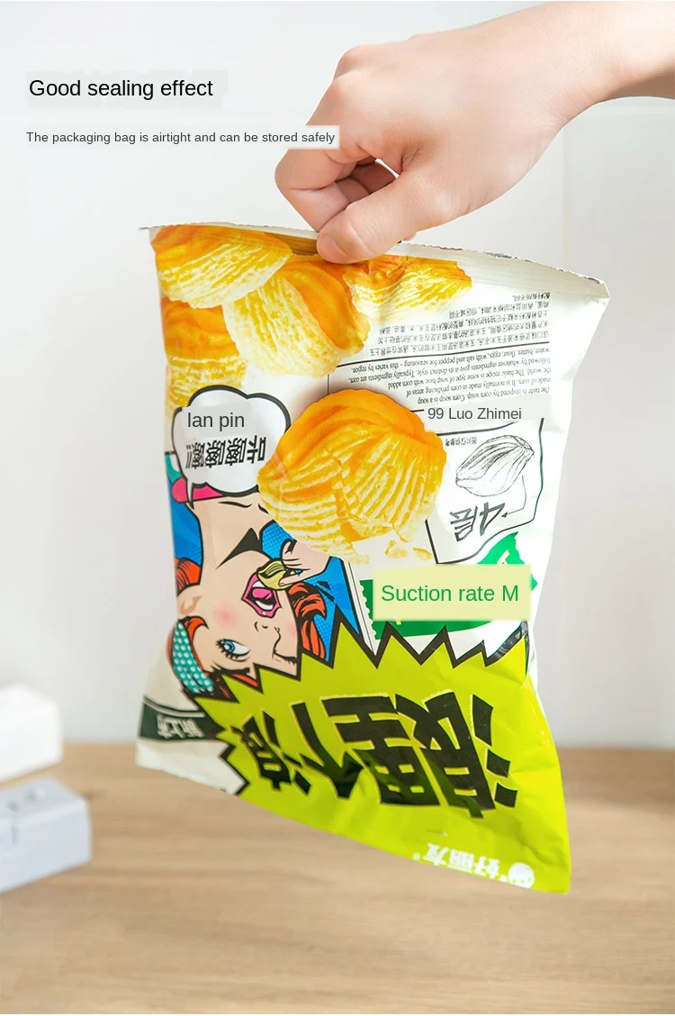 Особенности: Перезаряжаемая упаковочная машина не требует батарей, используется повторно, прост в эксплуатации, удобен в использовании и имеет хороший эффект герметизации. После того, как упаковка запечатана, она герметична и имеет магнит на задней части, который может быть адсорбирован на холодильнике для удобного хранения. USB перезаряжаемая конструкция, с собственным кабелем для передачи данных, батарея не требуется, и ее можно повторно заряжать. Параметры: Бренд: imakara Название: Перезаряжаемые машина Размер: 110*30*35 мм Материал: АБС + железо Вес: 80 г Время зарядки: 8 ч Время разогрева: 5 ~ 8 секунд является более подходящим Включает кабель для передачи данных, длина 455 мм Примечание: При зарядке включается красный светильник; При полной зарядке синий светильник включен