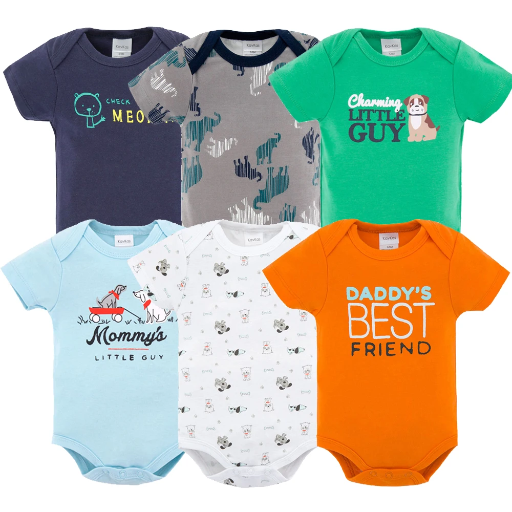Kavkas/6 шт./лот, детские комбинезоны, комбинезон унисекс, короткий рукав, 100% хлопок, круглый вырез, 0-12 месяцев, новые комплекты одежды для новорожденных мальчиков и девочек