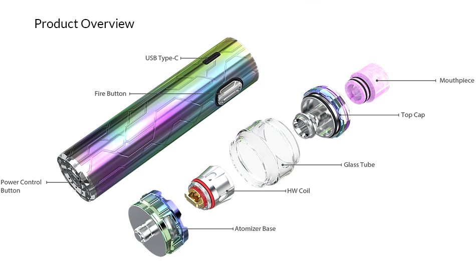 Диаметр: 25 ммВысота: 151,5 ммОбъем вмещаемой жидкости: 6,5 млЕмкость аккумулятора: 3000 мАчВыходная мощность: 30-75WmaxДиапазон сопротивления: 0,1-3,0Тип катушки: HW-T2 0,2 Ом Головка Катушки (Предустановленная); HW-M 0,15 Ом Головка Катушки