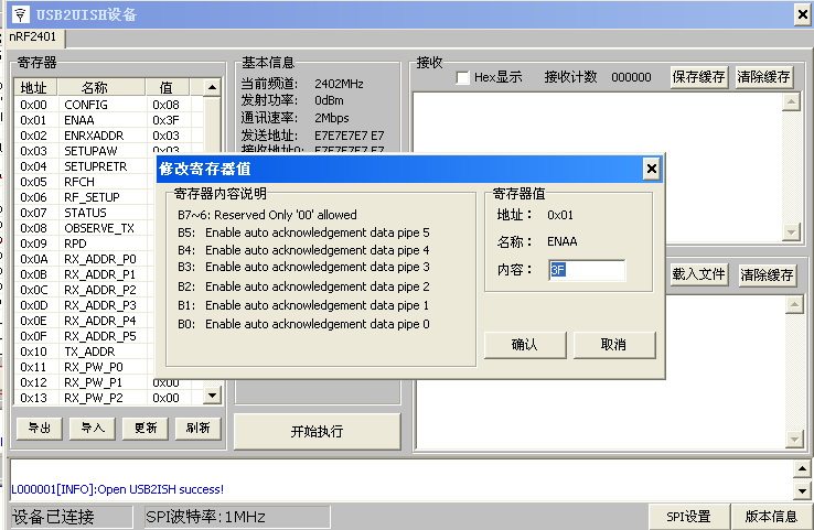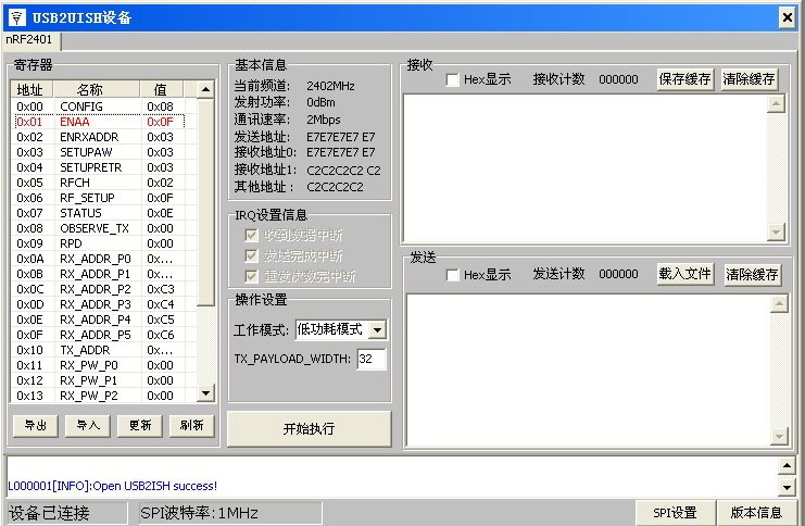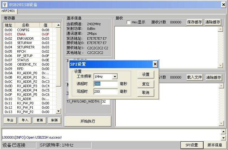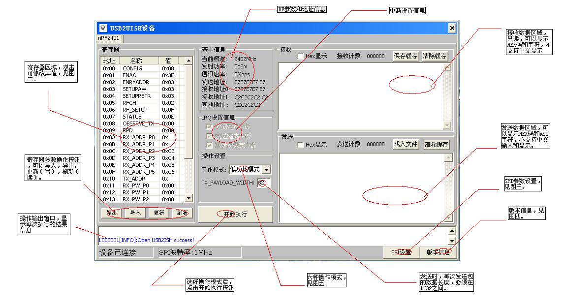 [Демонстрационная программа работы] Ниже показаны функции чтения и записи беспроводного модуля nRF2401: Рис. "1" основной интерфейс операции
