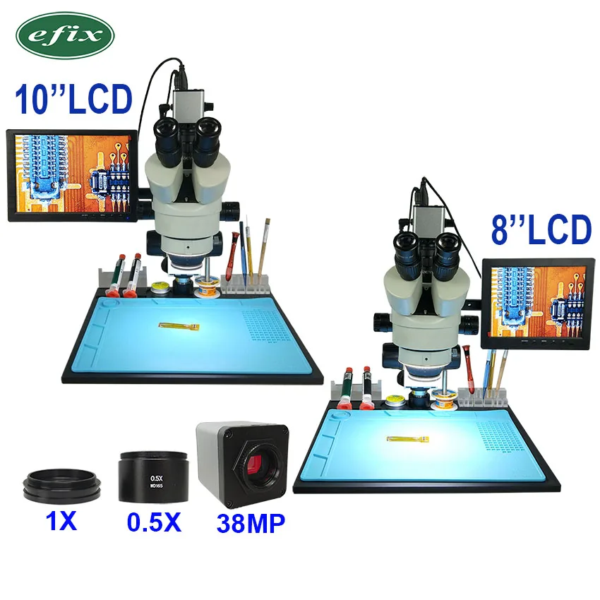 Efix 38MP 3,5-90X 10 ''8'' ЖК-дисплей пайки Тринокулярный Стерео HDMI USB микроскоп с большой верстак разработан инженером по ремонту телефона. Это просто, но функция очень сильная. Он оснащен 38MP промышленной видео и фото камерой, spcial дизайн LED и диммер. С помощью этого набора микроскопов вы обнаружите, что ваша работа более удобна и легка.