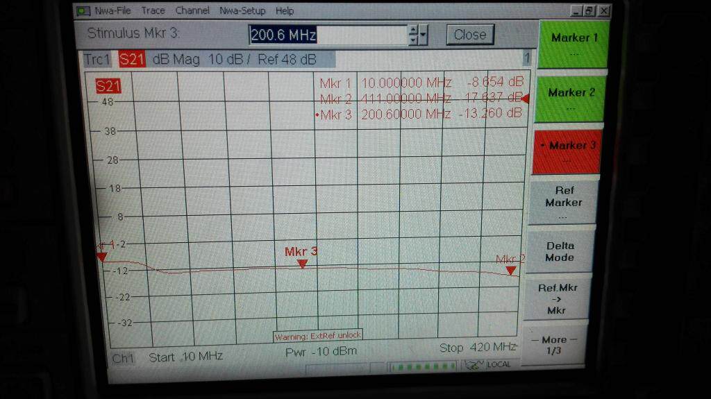Вход-сигнал развертки: 100 кГц-800 МГц мощность: 10 дБм Затухание-12 дБ (мин) -3 дБ Полоса пропускания 750 МГц в полосе переключения менее 2,5 дБ (в задней части циферблата немного больше, но параметры очень хорошие)