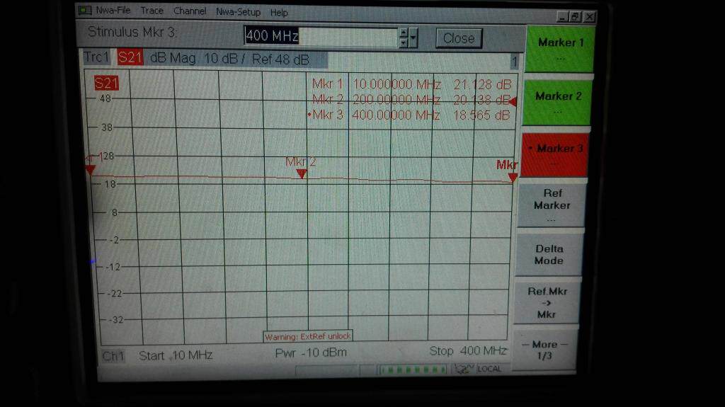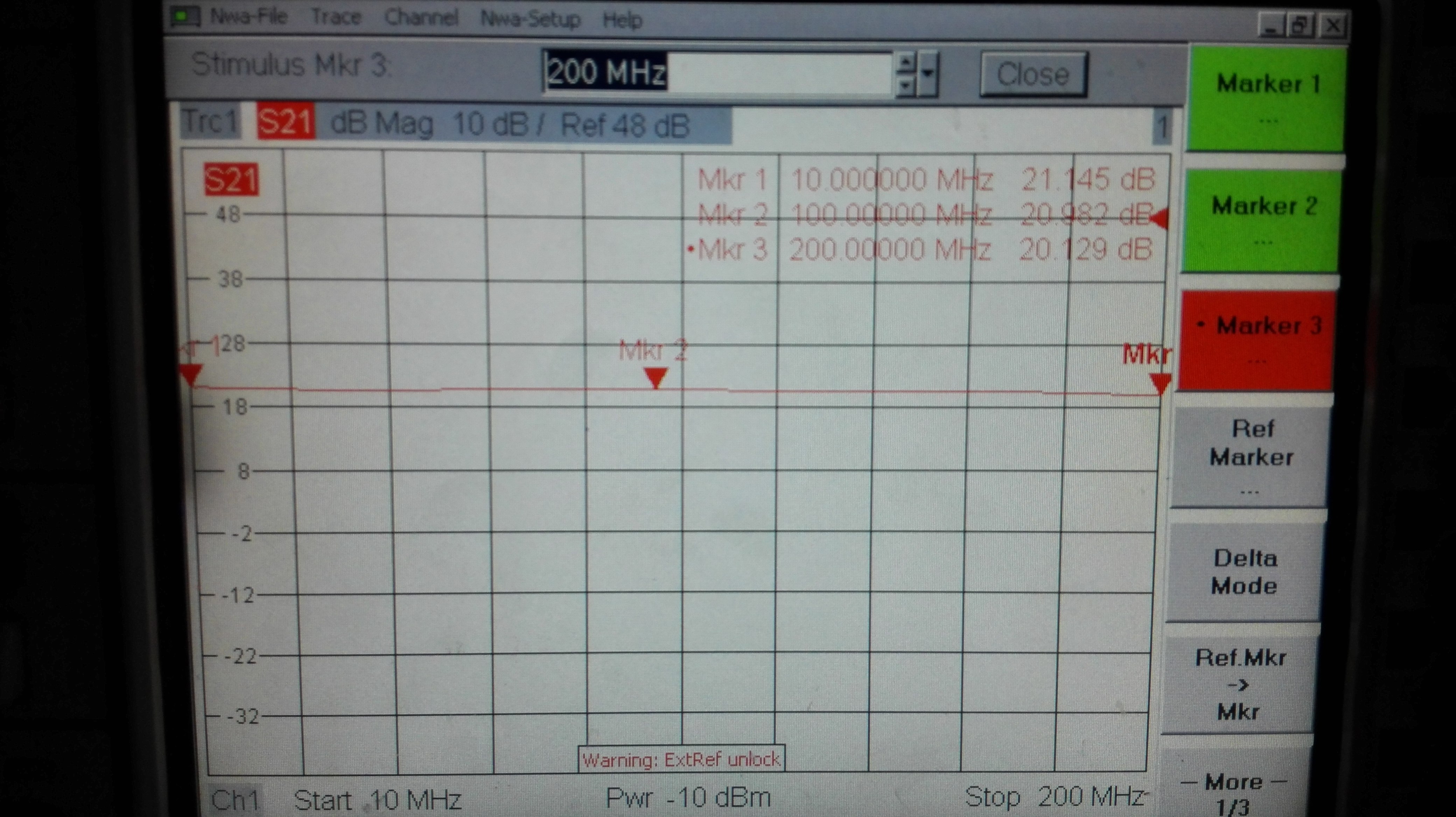 Вход-сигнал развертки: 100 кГц-800 МГц мощность: -10 дБм усиление + 10 дБ (макс.) -3 дБ Полоса пропускания 750 МГц в полосе переключения менее 2 дБ