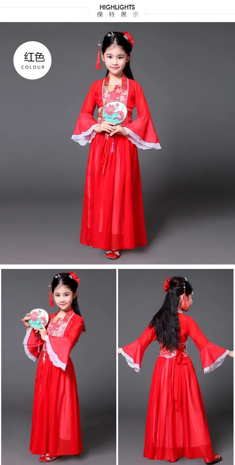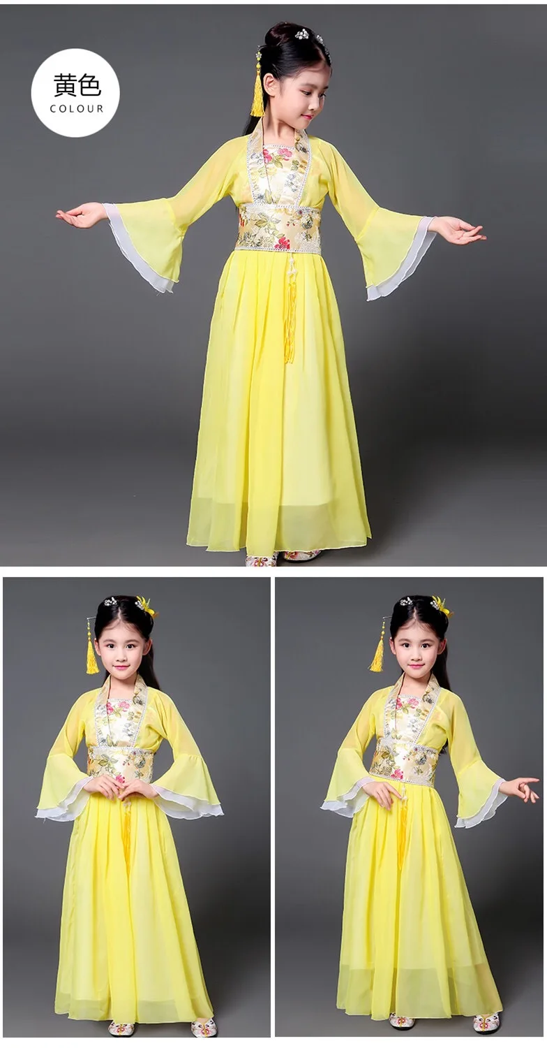 Традиционная древняя одежда Феи китайские народные танцевальные костюмы hanfu платье для девочек Детский костюм династии Тан