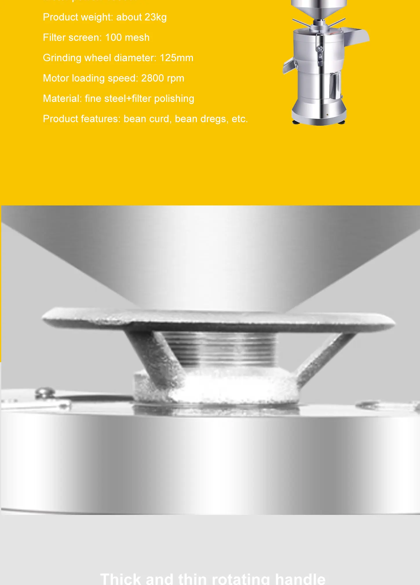 Модель: Тип 100 Напряжение: 220 В Мощность: 750 Вт Вес: 20 кг Размер: 30*30*70 см Скорость двигателя: 2800р/мин 100 производственная мощность модели: 200 кг/час Производственная мощность 125 моделей: 250 кг/час Диаметр колеса: 100 мм Номер фильтра: 100 сетка