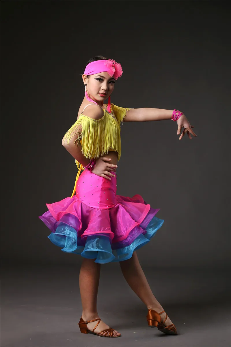 Платье с кисточками для латинских танцев для девочек, сальса, спандекс, Румба Танго ча, Детские бальные платья для детей, Самба, соревнование, бахрома