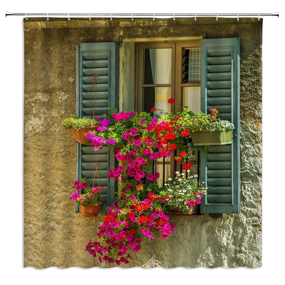 3d идиллические цветы занавеска для душа старая стена Водонепроницаемая занавеска для ванной занавеска водонепроницаемая ткань украшение 180*240 см с крючком занавеска для ванной