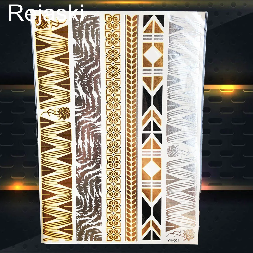 1 шт. «Ловец снов» временные золотые металлические наклейки для временных татуировок Ганеша девушка индийская цепь серьги Henna Mandala цветок быстро Исчезающие тату Для женщин татуировки золотого и серебряного ноги