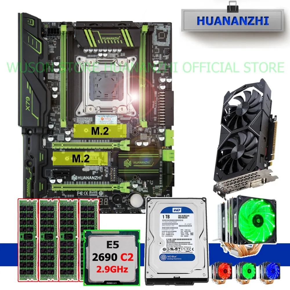 HUANANZHI X79 Pro Материнская плата с двумя M.2 слот + Процессор Intel Ксеон E5 2690 2,9 ГГц + 4*4G 1333 DDR3 REC + 6 Трубок + кулер адаптер + кабель SATA + металлический задний щит + Драйвер диск + Руководство пользователя + GTX1050Ti 4GD5 + 1 ТБ 3,5 '7200RPM SATA HDD