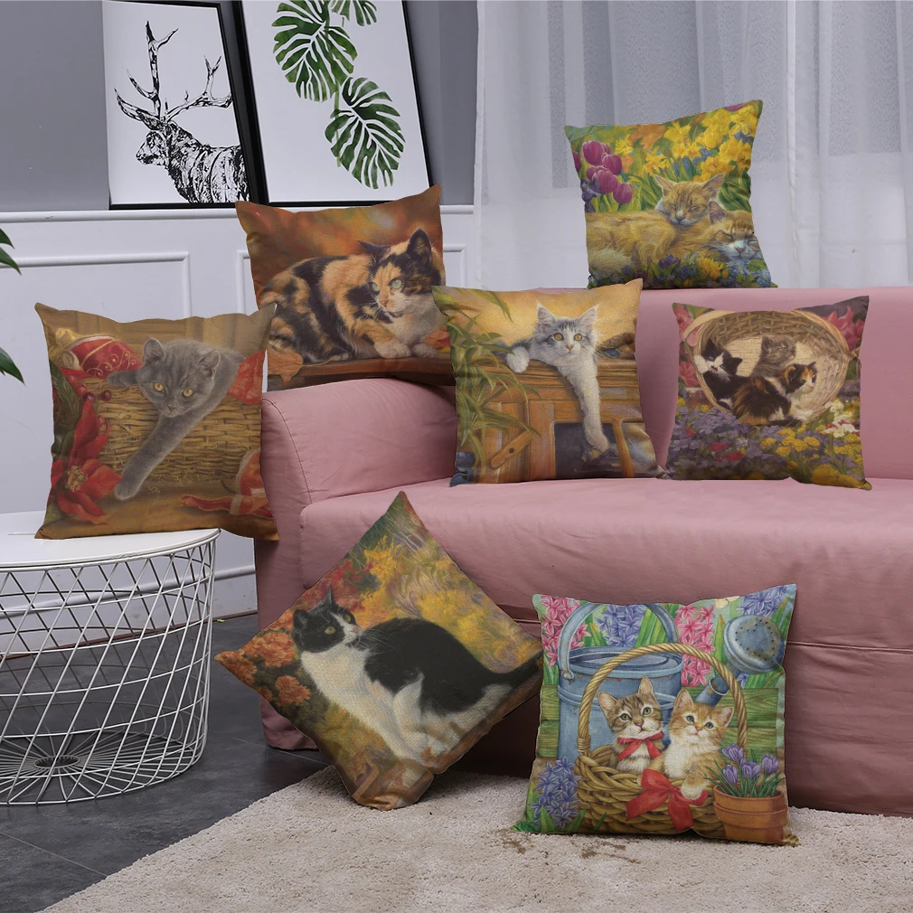 Милая наволочка с изображением кота из полиэстера и льна односторонняя печать подставка для ног для дивана офисная наволочка 45х45см