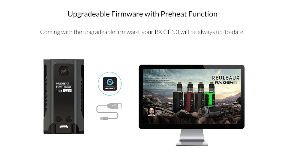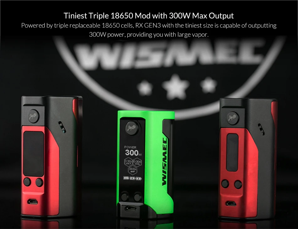 Reuleaux RX GEN3, третье поколение модов Reuleaux box, меньше, легче и эргономичнее, чем предыдущие версии. Имея большой 1,3 дюймовый oled-экран и совершенно новый интерфейс, GEN3 поставляется с тремя сменными 18650 ячейками, максимальная мощность которых может достигать 300 Вт. Кроме того, последняя специально разработанная для серии RX прошивка GEN3 всегда обновляется.
