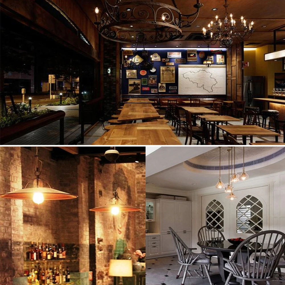 Светодиодная лампа накаливания E14 C35, Светодиодная лампа E27 A60 ST64, лампа Эдисона 110 В 220 В, винтажная свеча, глобус, люстра, освещение, COB лампа Особенности 360 градусов угол луча, мягкое освещение везде. С умным чипом IC, твердым гнездом, Мгновенным запуском, устойчивым освещением. Инновационная ламповая люстра, возврат к древним, нанесение на бар, вечеринку, декорирование мест, отели, столовую, конференц-зал, гостиную, выставочную комнату, магазины, коридоры, телефонная будка, студии и выставочные стенды и т. Д. Декоративное освещение дома и на улицеТаких областях, как Развлекательное освещение, архитектурное освещение, городское благоустройство, частичное освещение и так далее. Без ртути, без свинца, без УФ, инфракрасного или других элементов загрязнения, экологически чистые. Технические характеристики Гнездо:E27 Светодиодный чип: COB Материал: стекло Напряжение: 110 В/220 В переменного тока Цветовая температура: холодный белый 6000-6500 K, теплый белый 2800-3200 K Срок службы:20 000 часов Угол освещения: 360° Рабочая температура:-10 ~ +50° Размер:(1 Вт = 80 ~ 100 люменов)