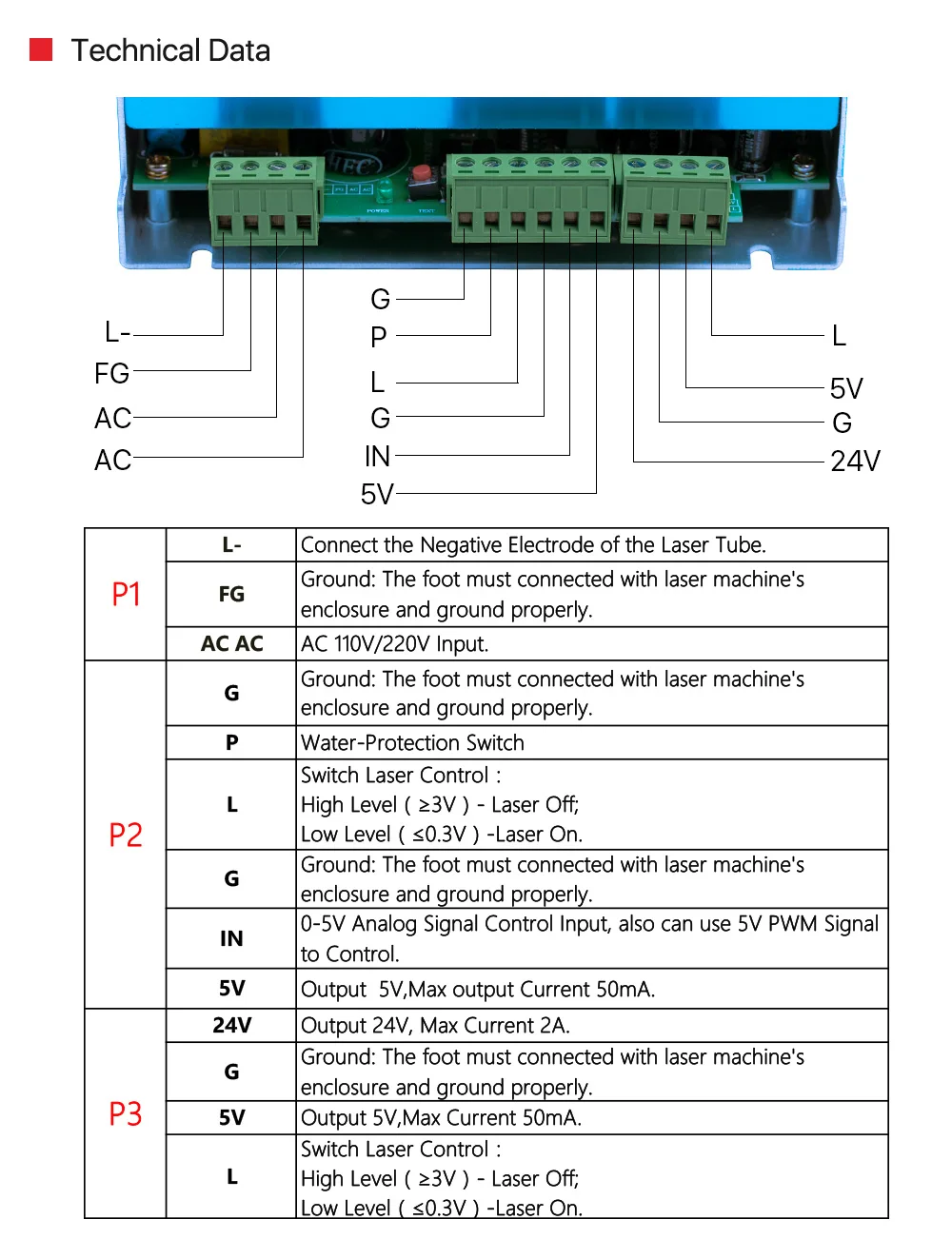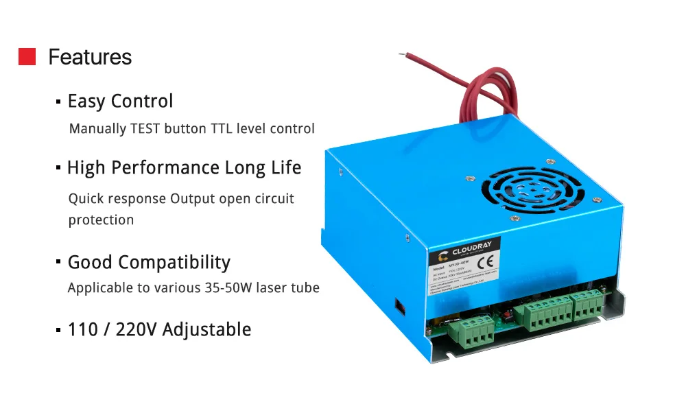 Ultrarayc 50 Вт СО2 лазерный источник питания для СО2 лазерной гравировки резки MYJG-50