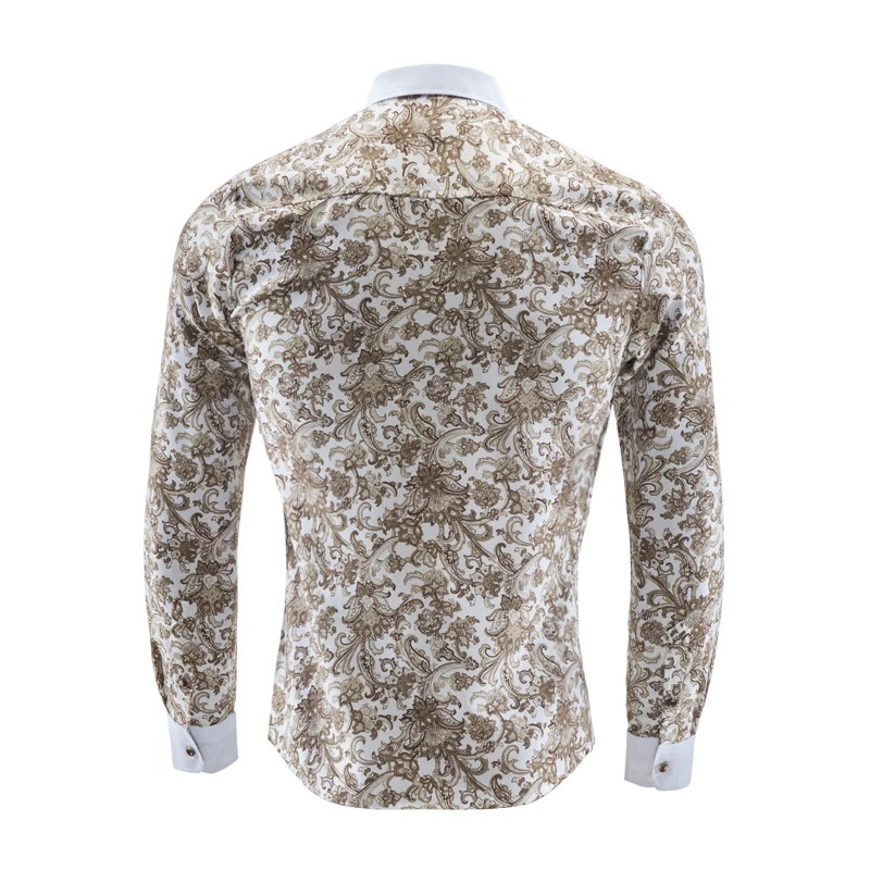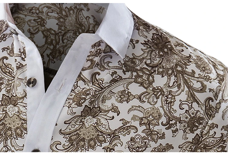 Рубашка с принтом пейсли, с длинным рукавом, приталенная, с золотым цветком, гавайская рубашка, на пуговицах, с контрастной планкой, повседневная мужская рубашка