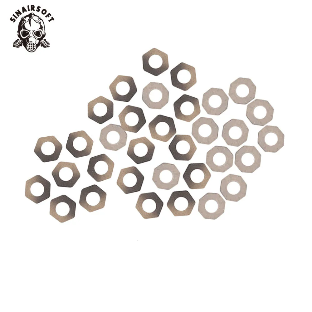 Устали от того, что ваша коробка передач звучала как ребенок плакал над пролитым молоком? Хорошо не волнуйтесь, этот SHS shim Комплект включает в себя все шимы, необходимые для того, чтобы ваш пистолет работал гладко и эффективно. Этот пакет включает в себя девять 0,1 мм прокладки, девять 0,15 мм прокладки и девять 0,2 мм прокладки. (Обратите внимание: упаковка может быть универсальной или обозначена как «Rocket Airsoft'», цвет посылка может быть красным или синим,Но сделано SHS OEM)