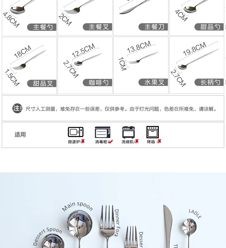 Название:Роскошная зеркальная Серебряная Посуда из нержавеющей стали Материал:304 из нержавеющей стали Покрытие:Зеркало серебристого цвета Вес:4 шт. около 250 г, 8 шт. около 380 г Особенности:Эко-дружественных Количество: -- 4 шт. в том числе 1 вилка для основного блюда + 1 главный нож + Основная ложка для еды + кофейная ложка (4 шт. в комплекте) -8 шт. в том числе 1 вилка для основного блюда + 1 главный нож + Основная ложка для еды + кофейная ложка + 1 вилка для фруктов + 1 вилка для десерта + 1 ложка для десерта + 1 ложка с длинной ручкой (8 шт. в комплекте) Преимущество: Передовая технология зеркальной полировки, легко моется, в посудомоечной машине безопасно. Идеально подходит для повседневного использования, праздничного ужина и более официальных мероприятий. Поводы для подарков: Церемония открытия, день рождения, памятные награды, свадьба, рекламные акции, бизнес подарки, юбилейные праздники, планирование общественных отношений, ярмарки, фестивали, преимущества сотрудников, перемещение