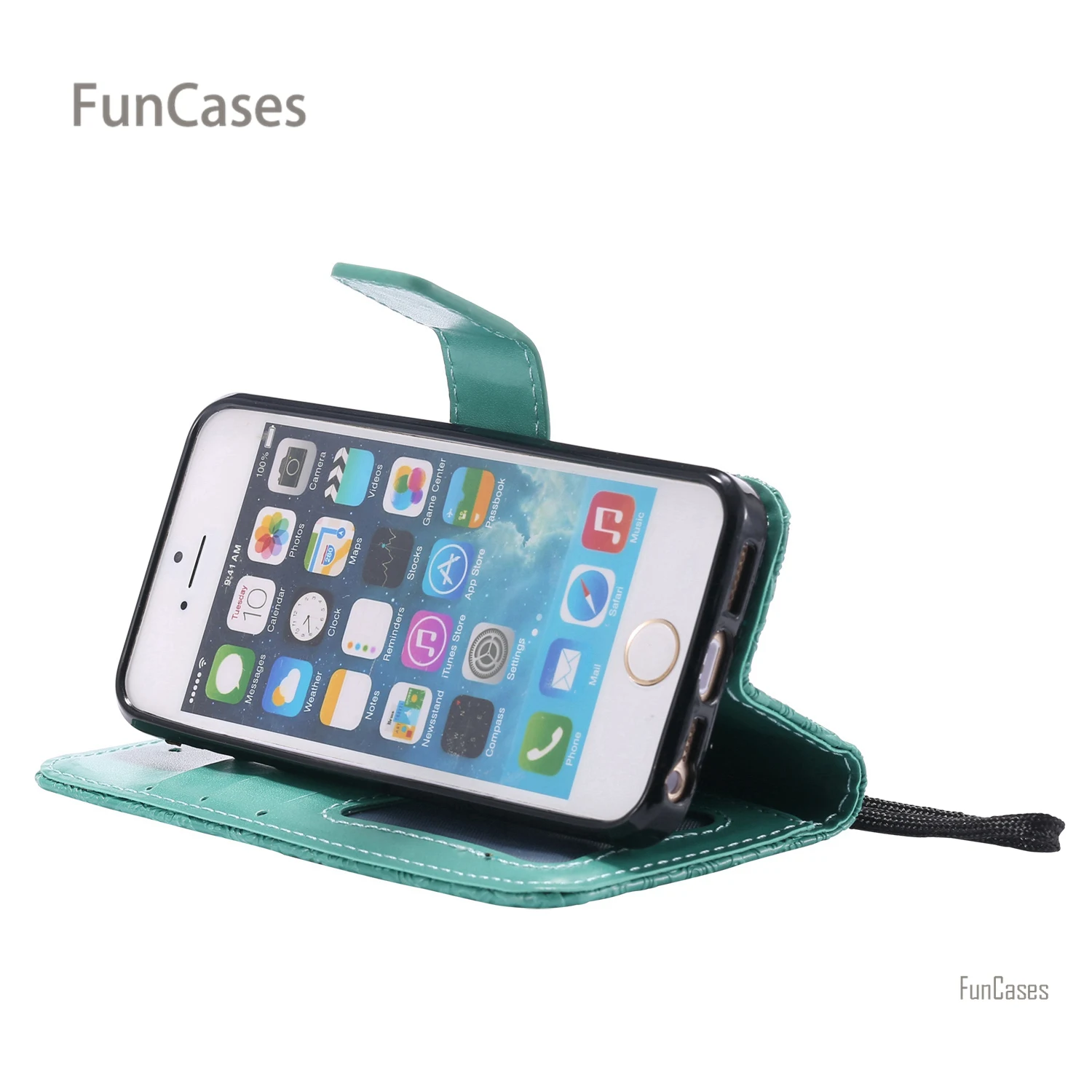 Флип-кейс в стиле лозы для iPhone 5, чехол из искусственной кожи, милый чехол Cep Telefonu для iPhone 5S SE, объемный Чехол для мобильного телефона