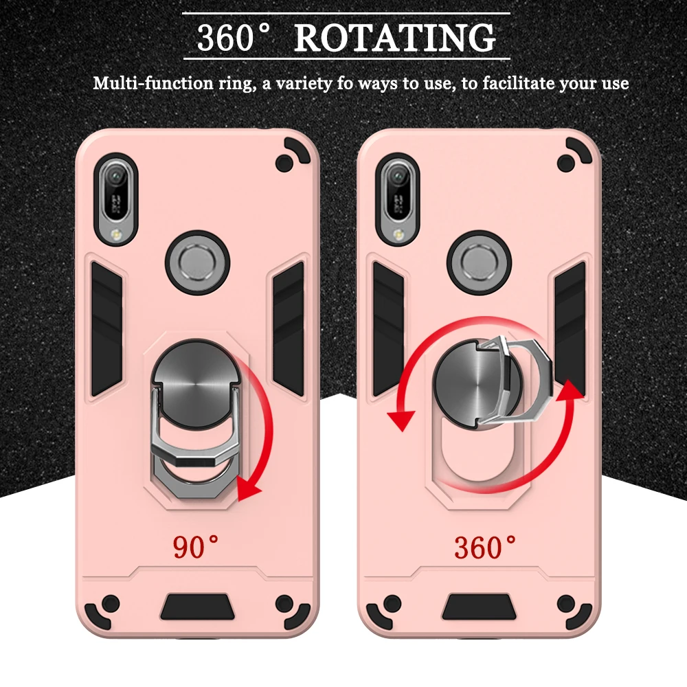Прозрачные чехлы с держателем для пальцев для Huawei Honor 8A, Роскошный чехол из поликарбоната + ТПУ для Huawei para Y6 Prime 2019 Pro