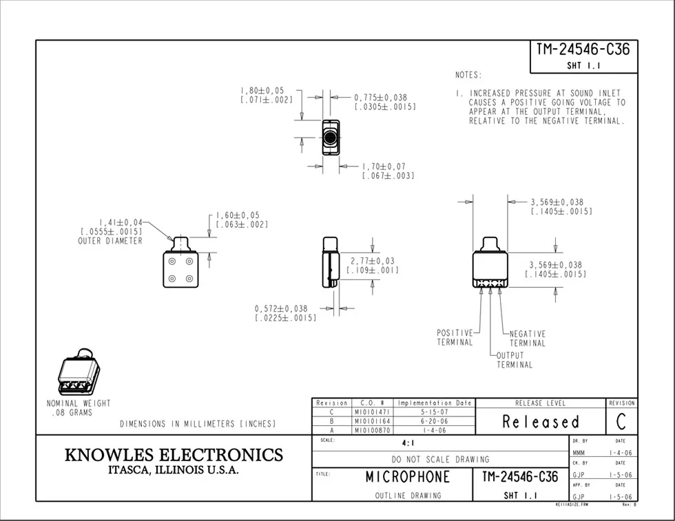 Микрофон для слухового аппарата Knowles TM-24546-C36