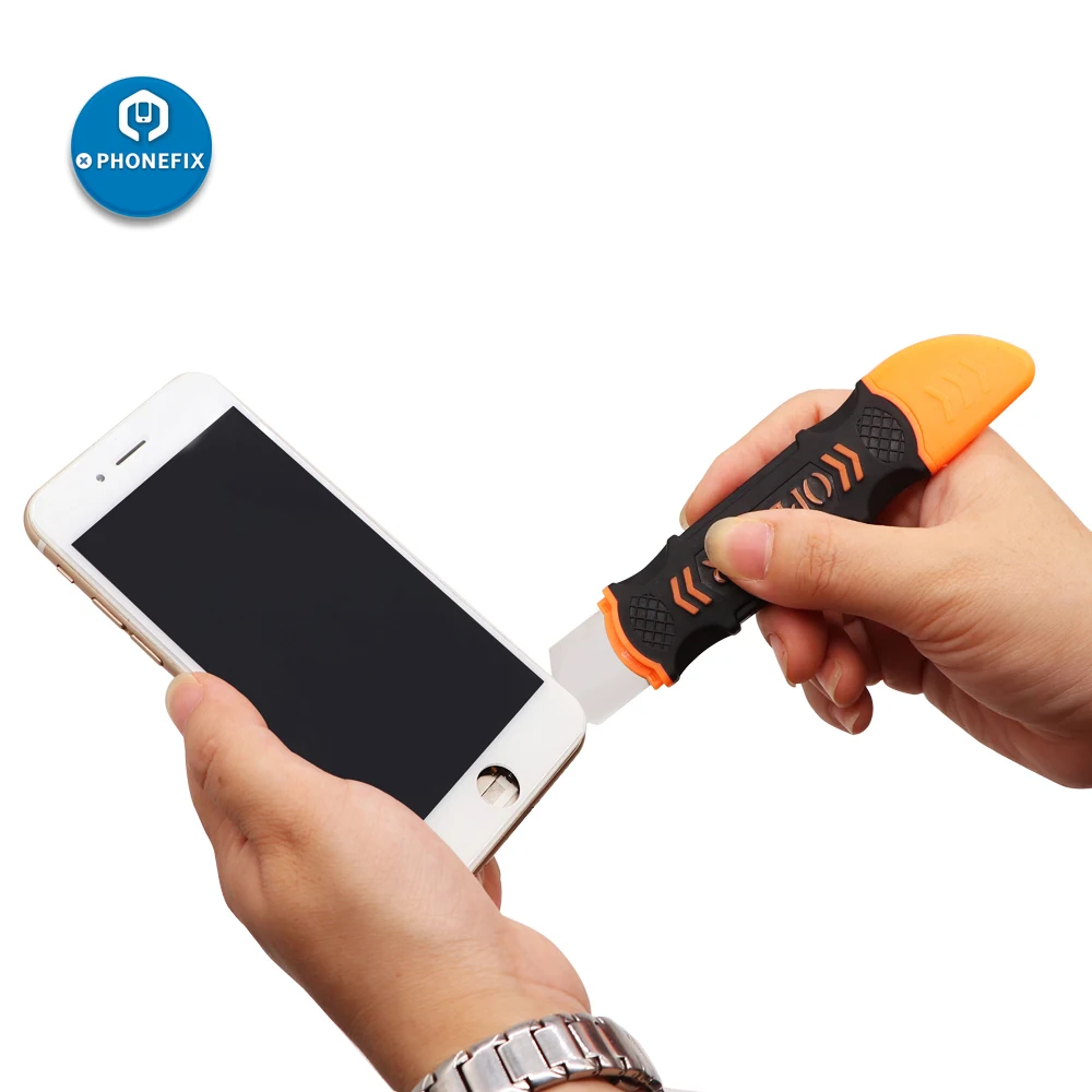 JM-OP12 инструмент для открытия-это высококачественный инструмент для ремонта смартфонов, он используется для демонтажа и обслуживания iPhone, iPad, Samsung и любых других мобильных устройств. Teardown pry инструмент для телефона является хорошим решением, чтобы сделать вашу ремонтную работу легко и быстро, это сэкономит ваше время и усилия.