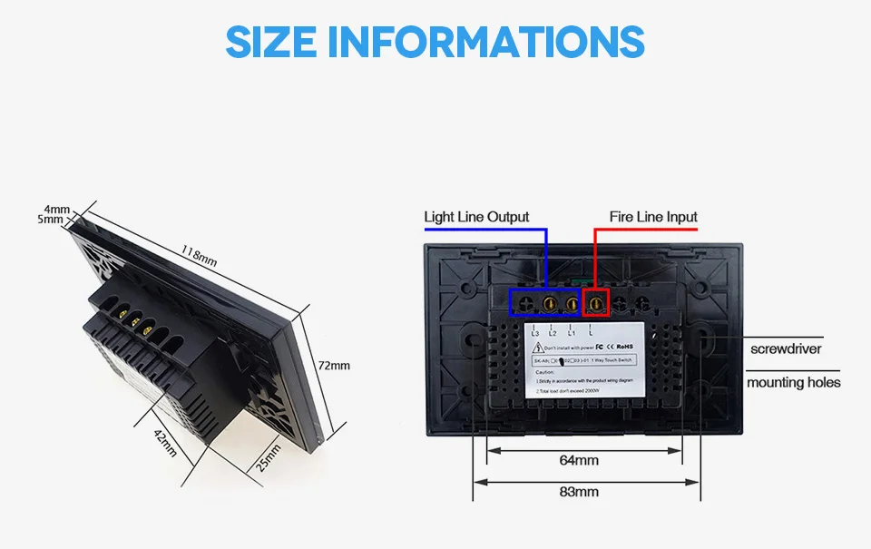 4. для первого сенсорного теста без стеклянной панели, пожалуйста, отключите питание после первого теста, затем закрепите сенсорный выключатель и защитную стеклянную панель, снова включите, и управляйте сенсорной панелью через 5 секунд