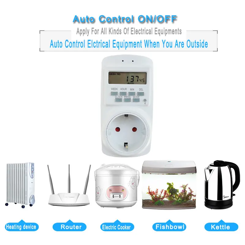 Электронный цифровой переключатель таймера, вилка европейского стандарта, кухонный таймер на выходе 250 В 50 Гц, циклический программируемый таймер на 7 дней, 12 и 24 часа